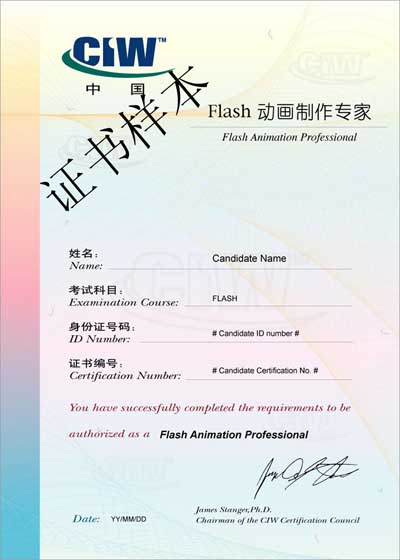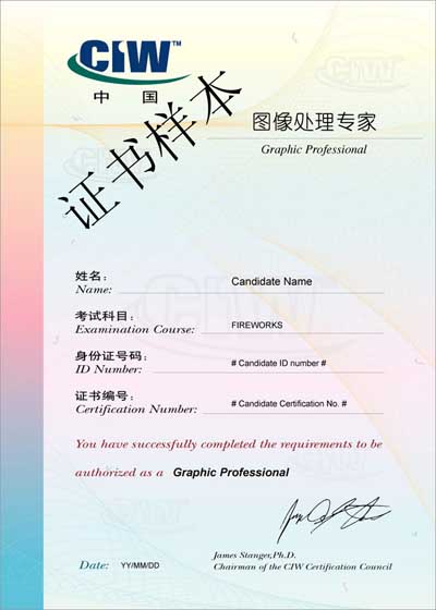 注:以上每門課程通過后可獲得美國 VCampus 公司頒發的網頁設計類分證書一張,通過三門(Fireworks 與 Photoshop 任選一門)后可獲得 CIW 網頁設計師總證書。