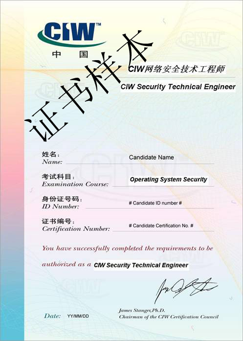 CIW(Certified Internet Webmaster),是全球最具權威地位的超越廠商背景的互聯網證書。該證書認可了 IT 行業中擔任網絡管理、安全管理、站點設計、站點開發及Java程序員等職務的專業人員的職業技能資格。 CIW認證得到了互聯網專家協會(AIP)、國際網站管理員協會(IWA)、國際互聯網證書機構(ICII)、美國國家新興技術職業資格中心(NWCET)、香港計算機協會、新加坡國家 infocomm 資格中心的認可。