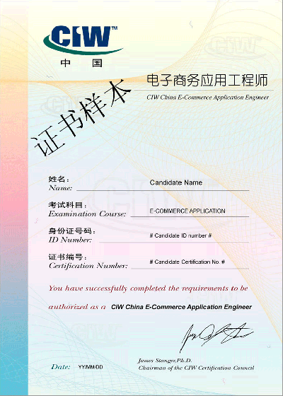 注:以上每門課程通過后可獲得美國 VCampus 公司頒發的電子商務類分證書一張, 通過全部三門后可獲得 CIW 電子商務專家總證書。