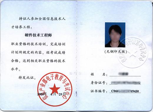 信息產(chǎn)業(yè)部國家權(quán)威證書