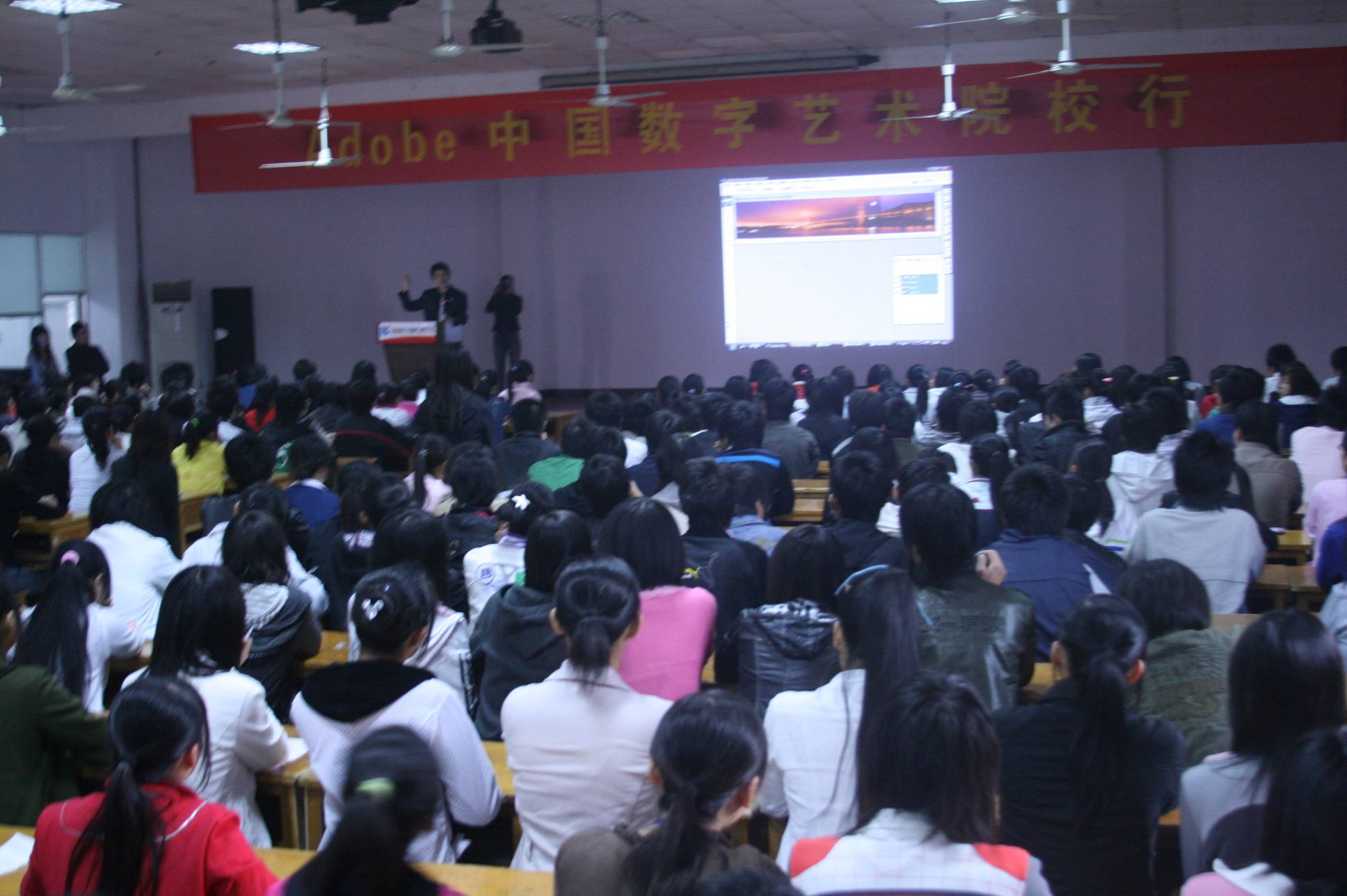 11月1日,一場(chǎng)由我院西校區(qū)、考試中心邀請(qǐng)Adobe中國(guó)數(shù)字藝術(shù)院校行聯(lián)合舉辦的Adobe知識(shí)講座在學(xué)院西區(qū)多功能廳舉行。來自08年新生班級(jí)的400余名新生參加了本次講座,Adobe中國(guó)數(shù)字藝術(shù)院校行知識(shí)講座王東主講以生動(dòng)的語(yǔ)言和豐富的知道引領(lǐng)同學(xué)們進(jìn)入了Adobe數(shù)字藝術(shù)的更高的認(rèn)識(shí)層面。