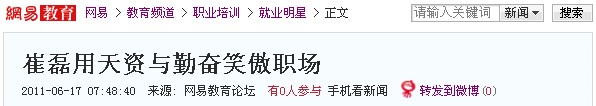 網(wǎng)易教育訊 90后,這是一個聽起來很絢麗的名詞,它是叛逆、張揚(yáng)、獨(dú)立的代名詞。但他們中間不乏有充滿激情,堅(jiān)韌執(zhí)著的青年,因此也就注定了他們的人生將會與眾不同。