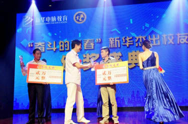 新華電腦教育形象大使濮存昕為榮譽校友獲得者許雙貴頒獎