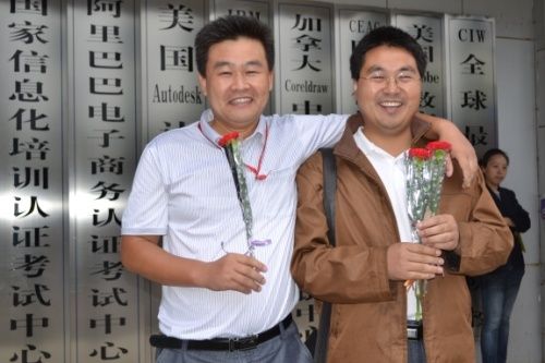 瞧咱這兩位男老師收到花后多么高興呀!