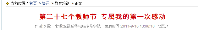 安徽新華電腦專(zhuān)修學(xué)院教學(xué)負(fù)責(zé)人在接受采訪中提到,“我院廣大教師獻(xiàn)身教育、愛(ài)崗敬業(yè)、勤奮工作、無(wú)私奉獻(xiàn)的高度責(zé)任感和在平凡工作中顯示的偉大精神令人深受感動(dòng)。我院也涌現(xiàn)出了一大批業(yè)務(wù)精湛、師德高尚的優(yōu)秀教師,一批風(fēng)華正茂的中青年教師正在成長(zhǎng),有力地推動(dòng)了全省職業(yè)教育事業(yè)的發(fā)展,為我省經(jīng)濟(jì)持續(xù)快速協(xié)調(diào)發(fā)展提供了強(qiáng)有力的人才支持。同時(shí)希望教師要樹(shù)立先進(jìn)的教育理念,成為素質(zhì)教育的引路人;要堅(jiān)持以德化人,成為人類(lèi)魂的工程師;要堅(jiān)持終身學(xué)習(xí)、率先學(xué)習(xí),成為IT技能教育的傳播者。”