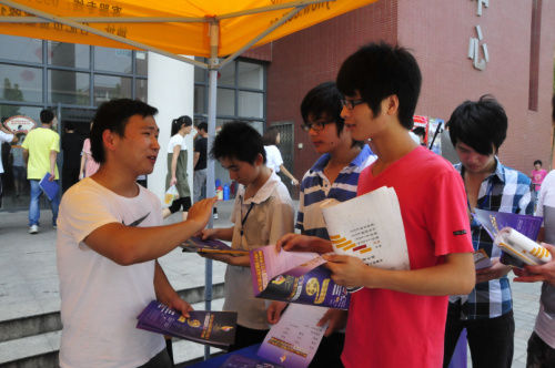 現場報名工作人員正在向前來報名咨詢的新華學子介紹報名要求