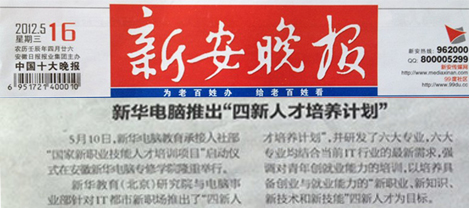 新安晚報報道:《國家新職業技能人才培訓項目落戶新華電腦教育集團》