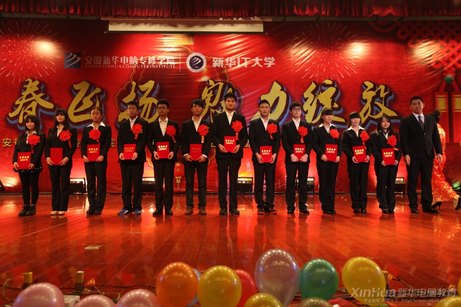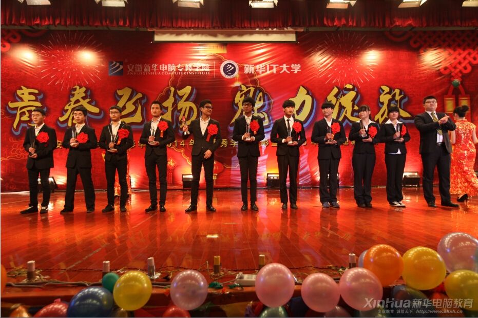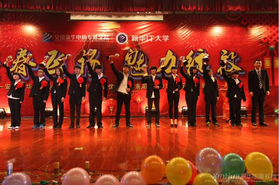 晚會,安徽新華電腦專修學院院長助理王科宣讀《關于2014年度優(yōu)秀社團,班級,學生表彰決定》。《決定》中提名獲獎社團、班級、學生依次在晚會現(xiàn)場接受表彰獎勵。