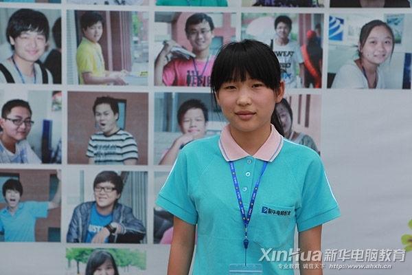 劉曉月,女,16歲,出生于文房四寶之鄉(xiāng)宣城,安徽新華電腦專修學(xué)院電子商務(wù)專業(yè)2014級新生。踏入新