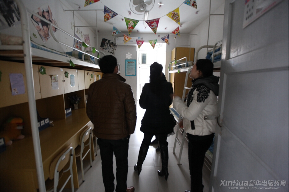 戴雪辰和父母在我院老師的帶領下參觀宿舍