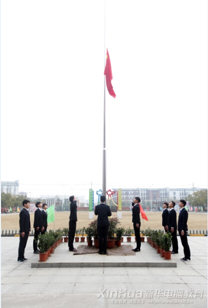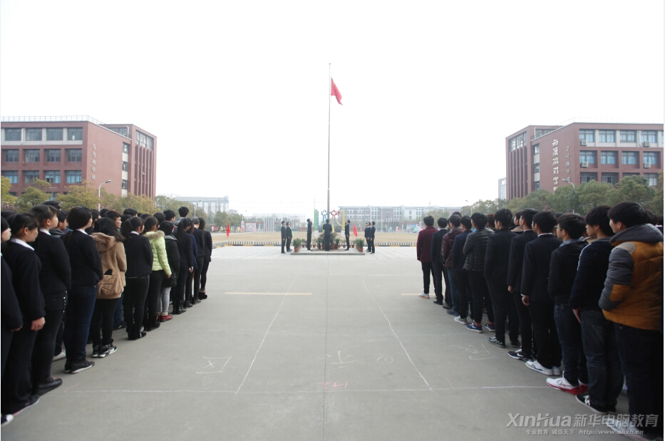 安徽新華電腦專修學院隆重舉行新學期第一次升旗儀式。學生們排著整齊的隊伍,肅然起立,雄壯的國歌在校園中奏響,全體師生懷著崇高的敬意注視著鮮紅的國旗。面對新的起點,心中充滿憧憬,冉冉升起的國旗寄托了全體師生對