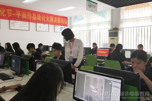 比賽還未開始,就得到了同學們的積極響應,所有的同學都自覺排好隊有條不紊地步入比賽現場。從早上八點五十到中午十一點半,整個比賽持續了將近三個小時。比賽過程中,同學們使出渾身解數一爭高下,不僅要在規定時間內設計制作創意十足的作品,而且要通過色彩、圖形、文字的協調,糅合產生良好的藝術效果。參賽者不斷尋找創意、靈感,通過熟練地操作設計軟件來傳達創意,其中不乏頗具創意的作品出現,充分體現了安徽新華學子熱愛生活、開拓創新、銳意進取的精神面貌。