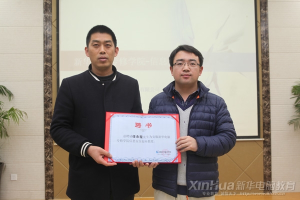 講座的最后,安徽新華電腦專修學院更是傾力為學院的學子們謀福利,聘請任永程老師為信息安全客座教授。相信同學們在任老師的引導下,能感悟出自己的學習生涯和人生旅程。
