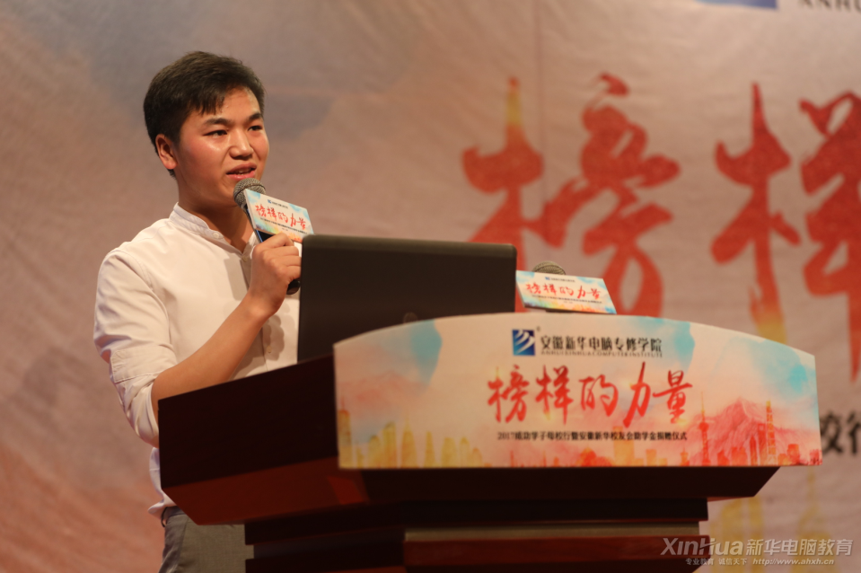 之后,主持人邀請了成功學(xué)子黃正格、王金剛、江靜以及成功學(xué)子的授業(yè)恩師章道林、王俊、吳葉群老師上臺,分享了他們在安徽新華電腦專修學(xué)院學(xué)習(xí)時的點(diǎn)點(diǎn)滴滴,以及學(xué)姐學(xué)長在創(chuàng)業(yè)就業(yè)路上的經(jīng)歷與體驗(yàn)。三位成功學(xué)子用自己的薪資,工作經(jīng)歷和挫折向在場的所有學(xué)子證明了一句話:有夢想就要為之努力,讓夢想綻放在行動力中。互聯(lián)、通達(dá)、修身、精技,新華學(xué)子熱血青春的譜寫,只為了那成就夢想的搖籃。