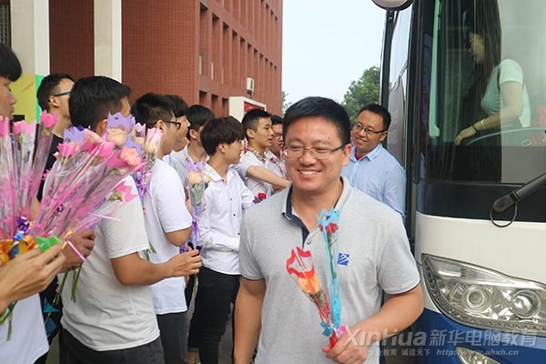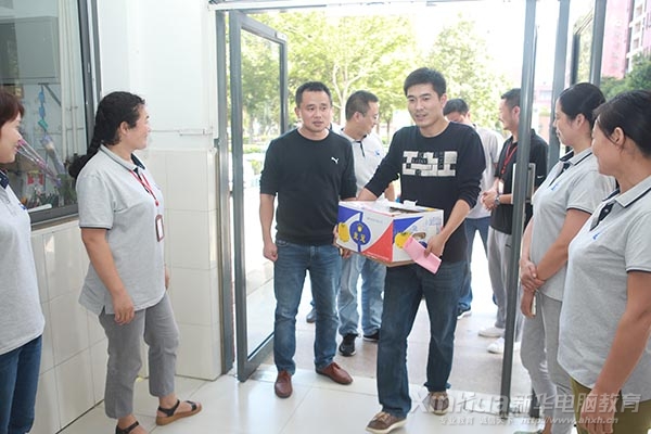 2017年9月8日,安徽新華電腦專修學院院長束凱鈞、院長助理胡德俊、院長助理仇洋帶領幾十名手捧鮮花的同學,為每一位老師獻上鮮花。隨后依次為每位老師送上水果等慰問品。