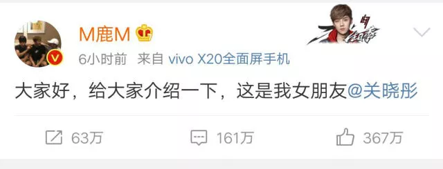 國慶長假最后一天的中午12點,單身狗們受到了一萬點暴擊,鹿晗在個人微博上公布與關曉彤戀情:“大家好,給大家介紹一下,這是我女朋友@關曉彤。”而關曉彤也在微博甜蜜互動。