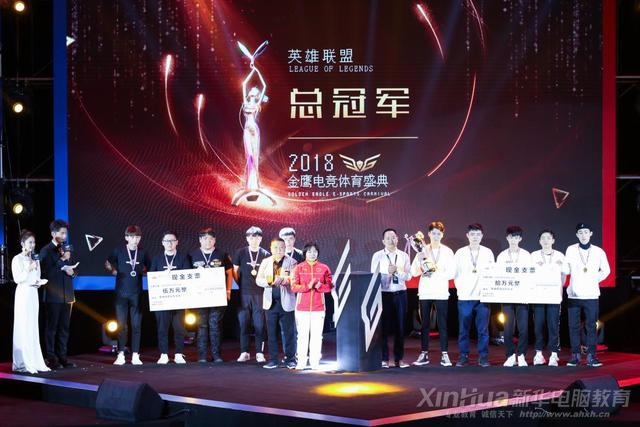 新華教育集團大學生項目事業部總經理陳成上臺致辭并給《英雄聯盟》獲勝隊伍頒獎。他表示:十分榮幸新華教育集團能作為此次2018金鷹電競大賽的官方教育合作伙伴。新華教育集團是全國首批開設電競運動與管理專業的學校之一。本次金鷹電競與新華教育的合作,希望能將電競與教育有機結合,以“以老帶新”的教育方式,促進電子競技教育事業的發展。此次電競大賽的開展,為新華開創了新一輪校企融合模式,讓新華學子以實戰實訓等形式參與到本次大賽中。以實習選手、裁判、解說等崗位充分參與,并且組隊參與到城市巡展賽中。也希望未來新華教育集團能與金鷹電競進行持續深度的合作,挖掘潛力電競人才,為電競行業儲備后續力量。共同助力中國電競行業的發展,讓電競體育文化能夠在更大的范圍內傳播正能量,培養更多的新時代電競人才。