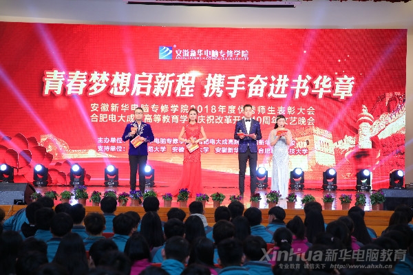 2018年12月29日,《“青春夢想啟新程 攜手奮進書華章”安徽新華電腦專修學院2018年度優秀師生表彰大會暨慶祝改革開放40周年文藝晚會》在學院大禮堂精彩上演。安徽新華電腦專修學院院長束凱鈞等領導嘉賓參加了本次元旦晚會,與全院6000余名師生一起,辭舊迎新,相約2019。