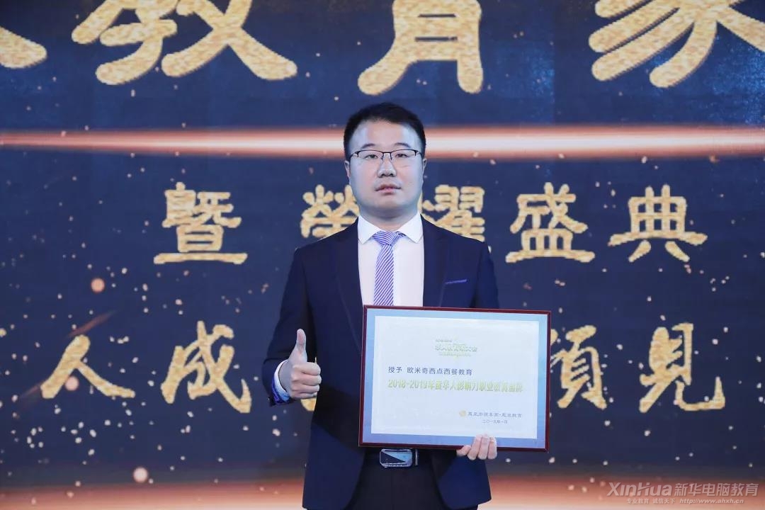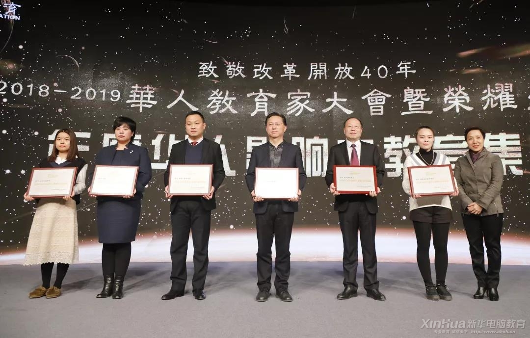 △新華教育集團副總裁汪俊代表集團領取“2018-2019年度華人影響力教育集團”榮譽
