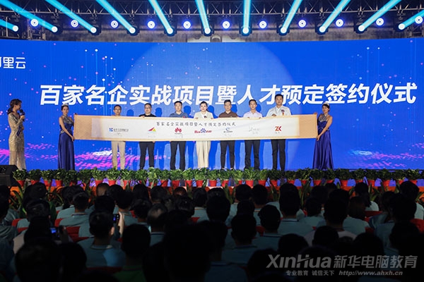 新華互聯(lián)網(wǎng)科技聯(lián)合百家名企形成2019產(chǎn)教聯(lián)盟,利用真實(shí)項(xiàng)目實(shí)戰(zhàn)為新華學(xué)子提供項(xiàng)目培訓(xùn)、技術(shù)支持、人才培養(yǎng)等多領(lǐng)域指導(dǎo)和合作。簽約儀式上,眾領(lǐng)導(dǎo)嘉賓上臺(tái)共同簽約,標(biāo)志著百家名企實(shí)戰(zhàn)項(xiàng)目暨人才預(yù)定正式啟動(dòng)。