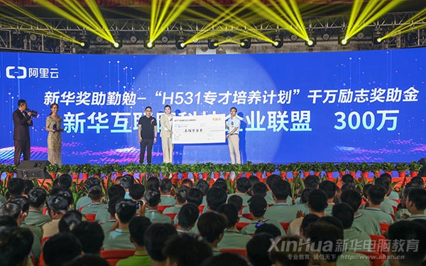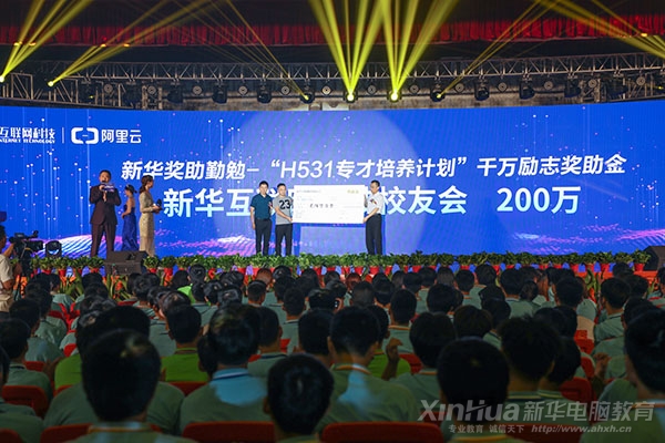 新華教育集團(tuán)電腦事業(yè)部副總經(jīng)理徐虹上臺(tái)宣讀《關(guān)于設(shè)立新華互聯(lián)網(wǎng)科技獎(jiǎng)助勤勉-“H531專才培養(yǎng)計(jì)劃”千萬獎(jiǎng)助金的決定》拉開千萬勵(lì)志獎(jiǎng)助金的序幕。