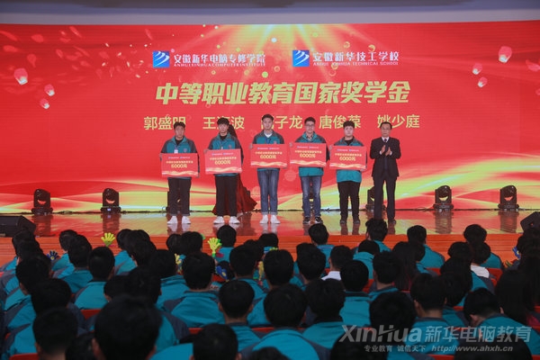 除了賽事獲獎外,我院2019年多名學子還獲得了國家獎學金及合肥市獎學金。其中郭盛明、王海波、閆子龍、唐俊葆、姚少庭5位同學獲得了中等職業教育國家獎學金(以上同學每人獎勵6000元),我院院長束凱鈞為獲獎同學頒獎。