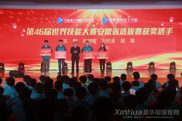 精彩的節目過后,是激動人心的表彰環節。我院副院長顏陳陳上臺宣讀第八屆全省職業技能大賽暨第46屆世界技能大賽安徽省選拔賽獲獎選手名單和2018-2019中等職業教育國家獎學金、合肥市中等職業教育學生獎學金和勵志獎學金決定及名單。