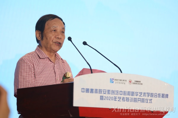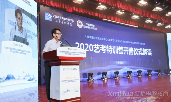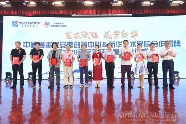 2020年7月17日上午10點,“藝術賦能·筑夢新華”中國書畫院安徽創作培訓中心&新華藝術學院合作揭牌暨2020年藝考特訓營開營儀式在中國合肥盛大舉辦。中國書畫院副院長、中國書畫研究會常務副主席朱秀坤;安徽新華電腦專修學院院長束凱鈞;中國書畫院副秘書長、安徽創作培訓中心主任王衛民等眾多業內領導、嘉賓及著名書畫家共同出席,一起見證中國書畫院安徽創作培訓中心和新華藝術學院合作揭牌。