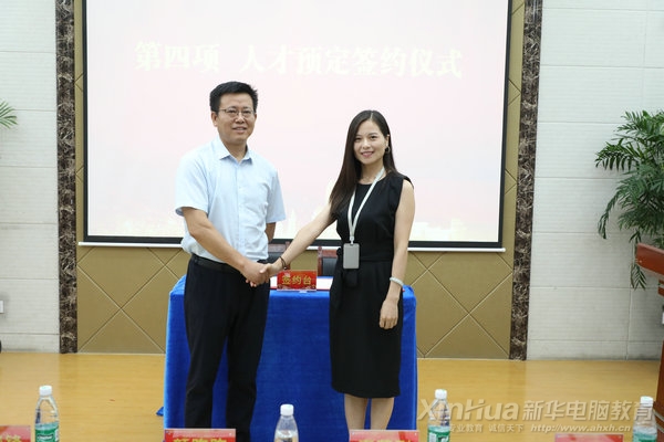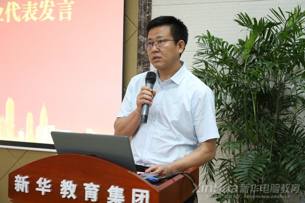緊接著,安徽中安鐵航教育投資集團有限公司負責人宣蘊剛代表企業發言,他在發言中表示:我們愿與安徽新華電腦專修學院進行深度合作,以專業共建訂單培養方式進行產教深度融合合作,目前主要合作的共建專業是航空服務與軌道智慧管理專業,打造具有中國特色的人才服務體系。