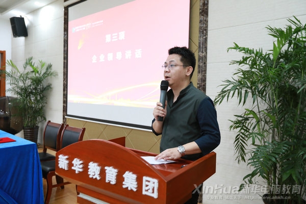 安徽京祺文化傳媒有限公司兼北京亞泰娛樂文化傳媒有限公司董事長趙睿宇發表講話,趙總表示:作為“人才實踐基地及未來發展方向”的企業,通過校企合作,讓校企雙方互相支持、互相滲透、優勢互補、資源共享,培養符合企業需求的復合型人才。