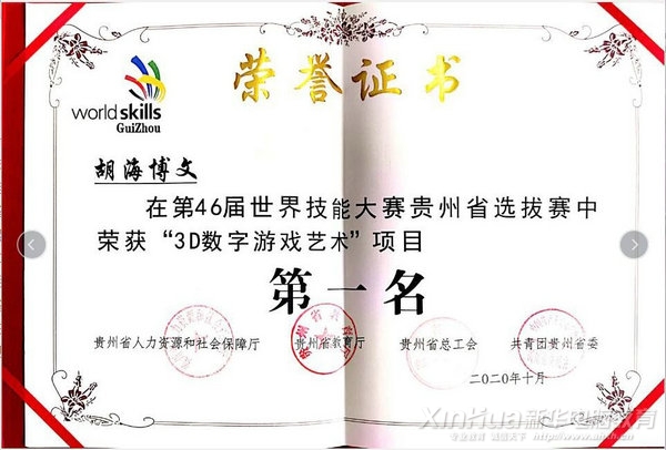 以賽促教,以賽強技。近年來,多位新華優秀學子代表學校參加省級以上技能大賽,均以超強實力脫穎而出。新華學子史園園,代表中國參加ACA第四屆國際環保設計大賽,斬獲第五名的優異成績。新華學子胡海博文,在第46屆世界技能大賽貴州省選拔賽中榮獲“3D數字游戲藝術”項目第一名的佳績。新華學子周文強,成功簽約國內頂級俱樂部,成為AG俱樂部青訓營選手。