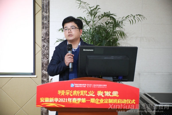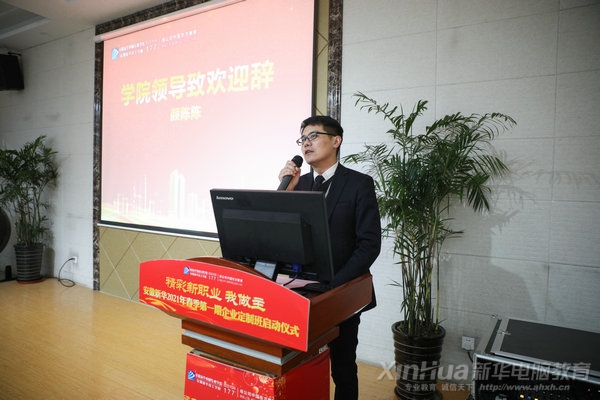 首先,安徽新華電腦專修學(xué)院副院長(zhǎng)顏陳陳為此次“精彩新職業(yè) 我做主”2021年春季第一期企業(yè)定制班啟動(dòng)儀式致辭。顏院長(zhǎng)首先向在場(chǎng)的定制班的同學(xué)們表示熱烈的祝賀。并指出學(xué)院與6大名企的強(qiáng)強(qiáng)合作,旨在促進(jìn)“以教促產(chǎn)、以產(chǎn)強(qiáng)教、產(chǎn)教并舉、多元共贏”良好局面的形成;構(gòu)建校企共建課程體系、校企共育人才、校企共建實(shí)訓(xùn)基地,同時(shí)將定制班的人才培養(yǎng)目標(biāo)落到實(shí)處,將學(xué)生培養(yǎng)成為具備行業(yè)崗位高素養(yǎng)的優(yōu)秀物聯(lián)網(wǎng)人。