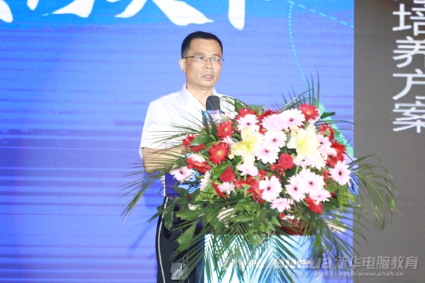 活動開始,中國東方教育集團常務副總裁沙旭發表主題講話,宣布新華電腦教育將正式升級發布符合新時代需求的六大產教融合實訓基地。