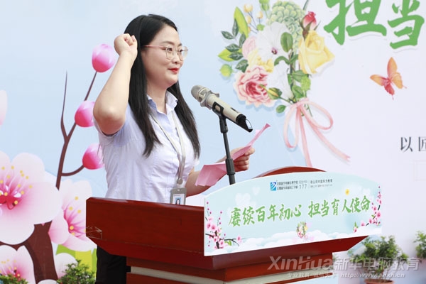 最美教師代表常婷婷老師現場帶領全體教職工宣誓,帶動感召廣大教師學習優秀教師的事跡與精神,學習熱愛教育的情懷與堅守。