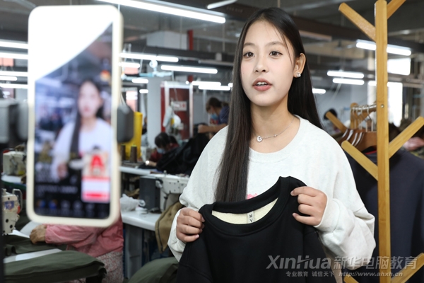 “走進源頭工廠,我們眼前一亮,感到十分震撼,原來一件衣服的生產有這么多程序,批量化的生產也確實降低了成本,讓衣服本身的性價比更高。見證產品的全流程出品,這也讓我在直播中更有底氣。”電商專業的李文雅擔任這次現場直播的主播,經驗豐富的她開場十分鐘就賣出一件衣服。