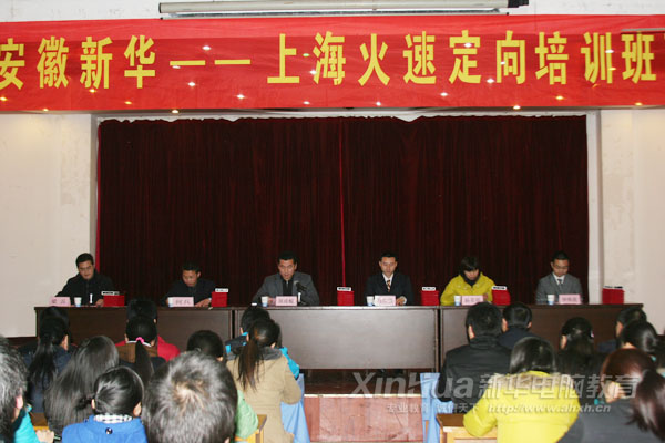 經過5天的緊張培訓與選拔,參加“安徽新華—上海火速”定向就業班的80余名新華學子順利結業。3月2日,上海火速網絡信息技術有限公司培訓總監馬紅強、上海火速一比多事業部蘇皖渠道總監何冰、安徽新華學生處主任楊英明、就業指導中心主任鄭成鯤等校企雙方領導共同見證了這一時刻。