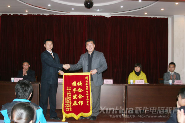 上海火速公司以向新華贈送錦旗的形式表達了感謝之情。上海火速網絡科技有限公司全國培訓總監馬紅強談到:“感謝新華給了我們這么好的一個平臺,去選拔適合企業的人才。我相信這次校企合作能夠為每一位參加培訓的學子帶來收獲。”