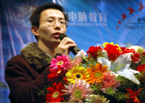 微軟MLC(中國(guó)區(qū))教育總監(jiān)李秦在頒獎(jiǎng)典禮上發(fā)言。(宋衛(wèi)義攝)