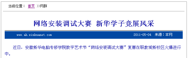 賽后,記者采訪了參與本次賽事監(jiān)督的胡振老師,胡老師告訴記者:“今天的安裝網(wǎng)絡(luò)調(diào)試大賽比往年更加精彩。不僅是參加人數(shù)上的突破,更是我們安徽新華電腦專修學院學生雄厚專業(yè)能力的體現(xiàn)。讓人感到驚喜的是我院的11級新生也參加了本次網(wǎng)絡(luò)安裝大賽,部分同學也進入了今天的復(fù)賽,讓人不敢小瞧他們的能力。他們是新華的驕傲!也祝愿同學們在接下來的比賽中他們?nèi)〉眉芽儯?rdquo;
