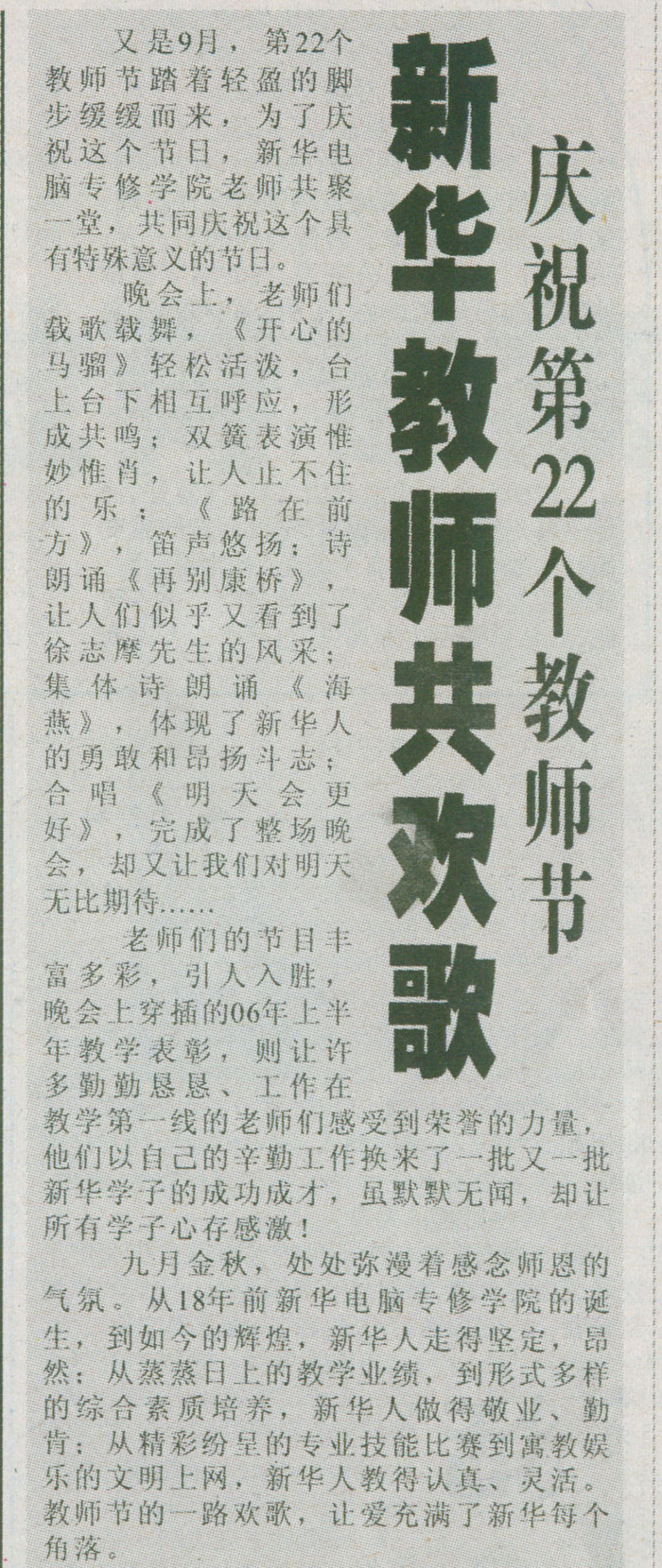 9月11日,《合肥晚報》C7版報道:“新華教師共歡歌”, 敬請關注!