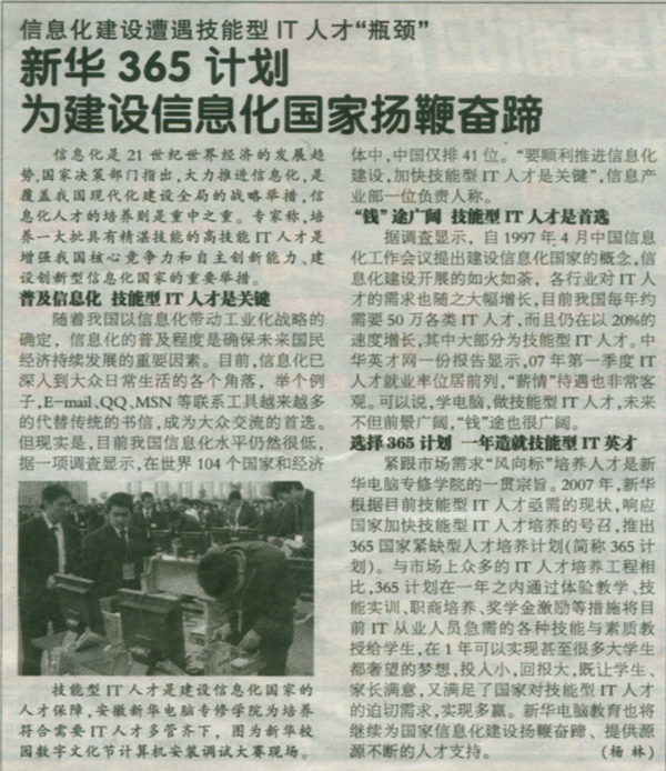 7月6日,《安徽商報》報道:“新華365計劃為建設信息化國家揚鞭奮蹄 ”,敬請關注!