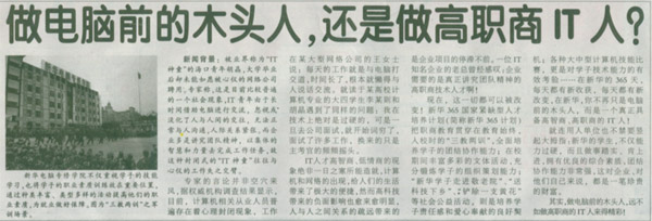 當前位置:首頁 > 新聞中心 > 青春新華 > 《安徽商報》報道:做電腦前的木頭人,還是做高職商IT人