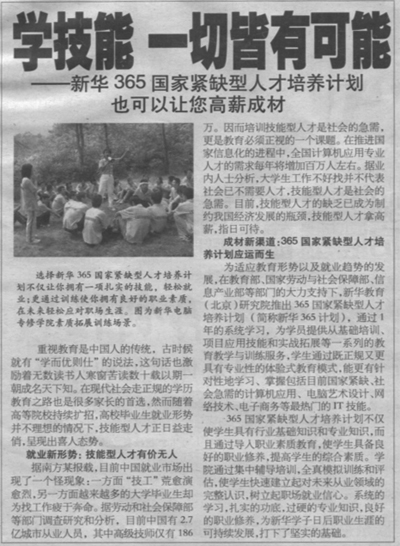 8月2日,《合肥晚報》報道:“學技能 一切皆有可能——新華365國家緊缺型人才培養計劃也可以讓您高薪成材 ”,敬請關注!