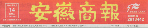 《安徽商報(bào)》報(bào)頭《安徽商報(bào)》報(bào)道新聞頁面截圖