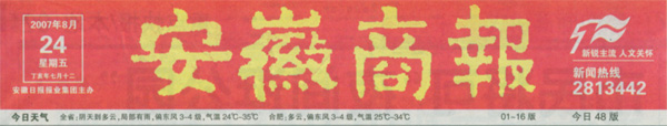 《安徽商報》報頭《安徽商報》報道新聞頁面截圖