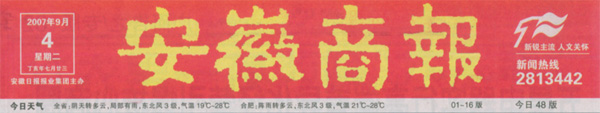 《安徽商報》報頭《安徽商報》報道新聞頁面截圖