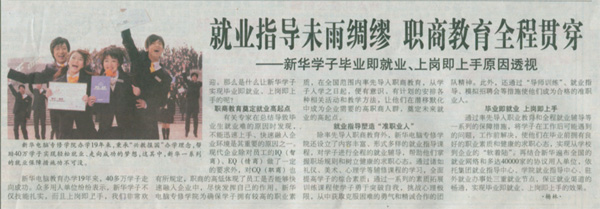 9月3日,《合肥晚報》報道:“就業指導未雨綢繆 職商教育全程貫穿——新華學子畢業即就業、上崗即上手原因透視”,敬請關注!