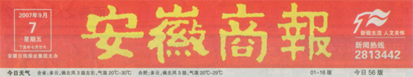 《安徽商報》報頭《安徽商報》報道新聞頁面截圖