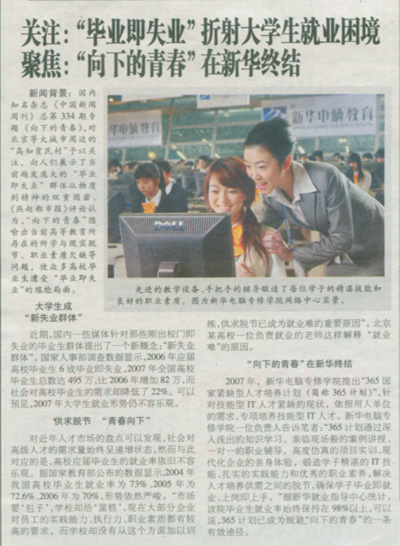 9月17日,《合肥晚報(bào)》報(bào)道:“關(guān)注:‘畢業(yè)即失業(yè)’折射大學(xué)生就業(yè)困境——聚焦:‘向下的青春’在新華終結(jié)業(yè)”,敬請關(guān)注!