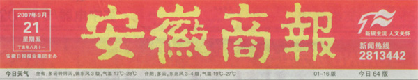 《安徽商報》報頭《安徽商報》報道新聞頁面截圖
